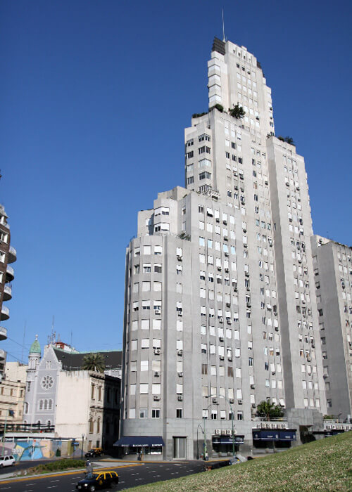 Cette tour, inaugurée en 1936, a été le premier gratte-ciel de Buenos Aires. En béton armé, elle couvre une superficie de 2.400 m² et s’élève à 120 m de hauteur. Comptant 33 étages, 113 appartements, 13 ascenseurs, 5 entrées indépendantes, 5 escaliers et un parking, ce bâtiment est à l’époque totalement inédit. Curieusement, l’immeuble ne possède pas d’interphone, chaque visiteur doit donc s’annoncer à la réception qui se charge d’appeler les appartements.