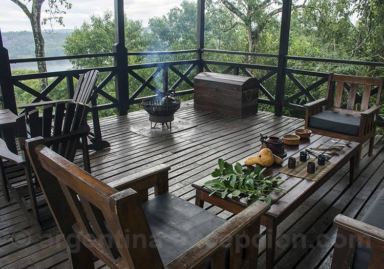 Piscine et grande bibliothèque sont à disposition des hôtes, des concerts de musique guaranie régulièrement organisés et le mirador au-dessus des arbres le lieu idéal pour d’inoubliables couchers de soleil. Un petit coin de paradis dans la jungle au bord du fleuve Paraná, à une demi-heure des chutes d’Iguazú et à côté des mines de Wanda.