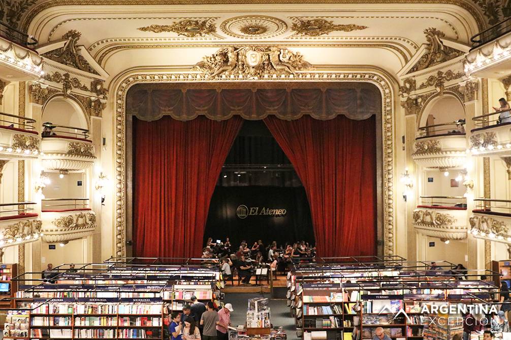 Si le bâtiment fête cette année le centenaire de son inauguration, la librairie est pourtant récente ; il s’agit en effet initialement d’un théâtre, le Grand Splendid, bâti à la place de l’antique Teatro Nacional Norte. Dès ses débuts, maints grands artistes de ballet et d’opéra comme de tango ont foulé ses planches ; parmi eux Carlos Gardel, figure majeure du tango dans la première moitié du XXe siècle. Les plus grands noms du tango y enregistrent également de nombreux morceaux grâce à la Radio Splendid et son label Odeon qui se trouvent dans l’enceinte du théâtre. Ce dernier se vit ainsi dédier un tango par Roberto Firpo en 1927.Il est ensuite reconverti en cinéma à la fin des années 1920, pour être finalement rénové quatre-vingt ans plus tard par l’architecte Fabrizio Manzone et devenir la magnifique librairie que nous visitons aujourd´hui. Cette dernière fait partie des enseignes du groupe Yenny – El Ateneo. Initialement El Ateneo il est, depuis sa création il y a plus d’un siècle, à la fois libraire et éditeur. Cette affaire familiale est notamment connue pour avoir laissé en vente des ouvrages à l’époque interdits dans l’Espagne franquiste. De leurs quarante-cinq enseignes argentines, El Ateneo Grand Splendid demeure, et de loin, la plus remarquable.