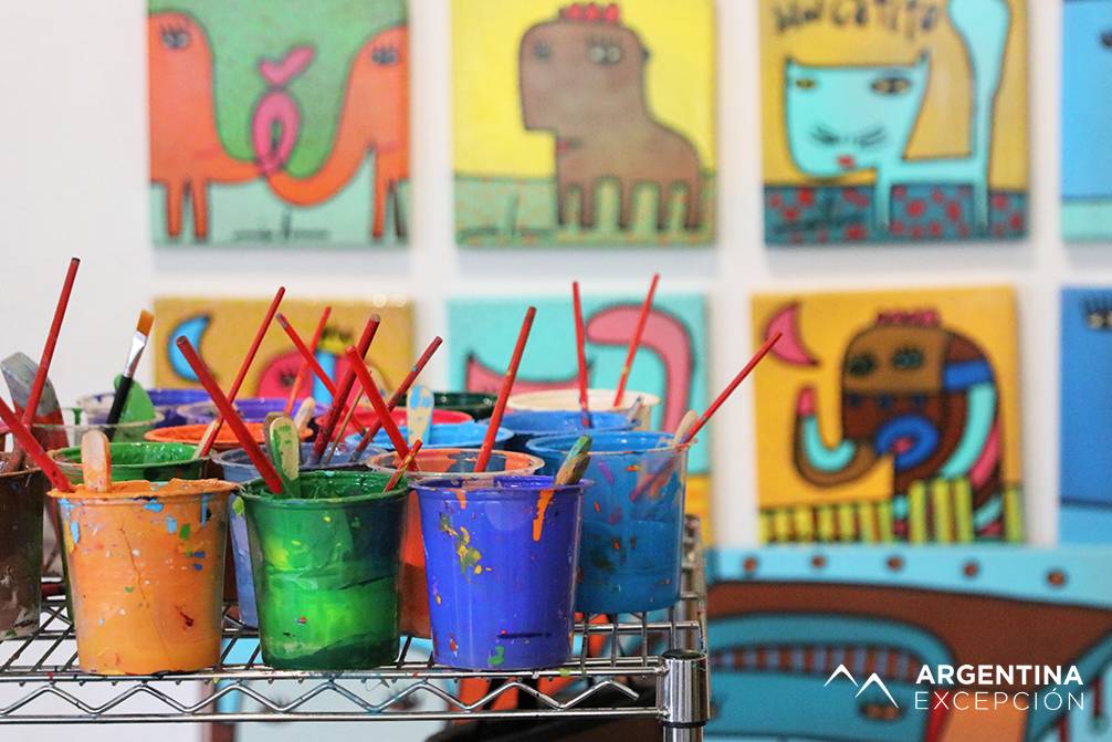 C’est d’ailleurs cette légèreté et cette authenticité qu’il confie apprécier chez les enfants, pour qui il met en place de nombreuses activités ludiques d’initiation à l’art. Ils sont sans filtre quand il s’agit d’endosser le rôle de critique, c’est pourquoi en émanent les plus belles éloges comme les jugements les plus sévères. S’il existe une collection de cahiers de coloriages et autres objets dérivés adaptés pour les enfants, Milo est avant tout présent pour les jeunes à travers ses actions sociales organisées pour eux. D’abord dans sa région natale puis dans celle de Buenos Aires, il dédie son temps depuis 15 ans à l’organisation et à la mise en œuvre d’activités visant à lutter contre la pauvreté et la précarité à travers la pratique de l’art.