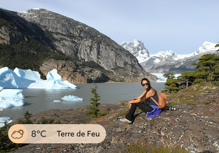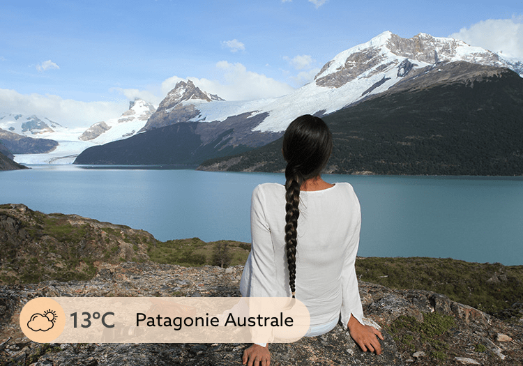 La Patagonie australe, des glaciers est une région parfois austère avec son climat instable. Le vent fort et fréquent de cette région est célèbre. La période la plus favorable est donc l’été de décembre à février. Mais on donnera une note particulière aux mois de mars et d’avril car les couleurs extraordinaires de l’automne couvrent les montagnes.