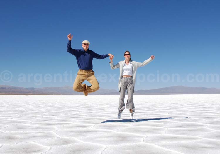 Le lendemain c’est le grand départ pour les hautes Andes et la visite de las Salinas Grandes à 4200 mètres d’altitude. Sur ce lac salé y travaillent les pères et fils de famille qui depuis des temps immémoriaux y bénéficient du privilège de récolter le sel à la pelle en creusant la croute du lac. Privilège terrible, le soleil brûlant tout sur cette terre blanche où l’air manque, et où les hommes ne vivent pas vieux.