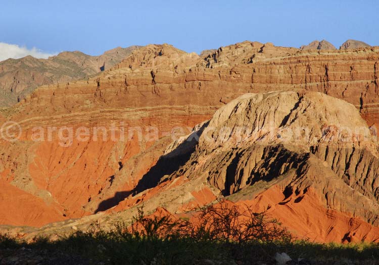 Argentina Excepcion, qui a tout prévu, nous suggère de marcher au milieu de ces montagnes malgré le cagna : nous voilà partis. Nous ne le regrettons pas parce que le soleil sublime les couleurs des parois, laissant apparaître ces dernières avec des intensités différentes selon le lieu où vous êtes, et à mesure que vous marchez la montagne change comme les costumes de Frigolo.