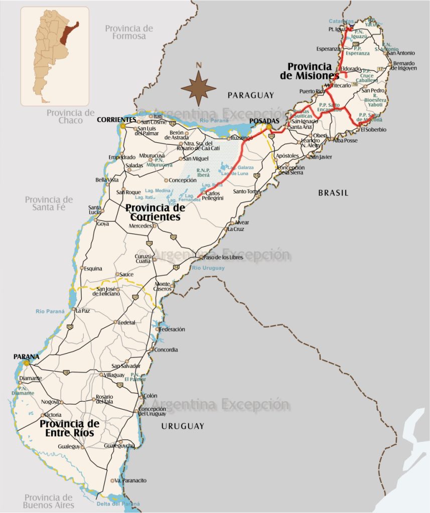 DURÉE et DISTANCE : 260 km de Posadas à Mocona, soit plus ou moins 5 heures de voyage auxquelles s’ajoutent 3 heures environ de visites et d’arrêts.