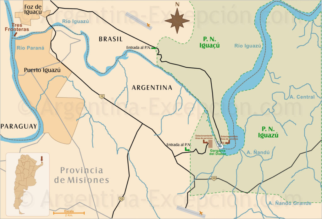 DISTANCE et DURÉE : 42 km / 40 minutes de Puerto Libertad jusqu’au parc d’Iguazu argentin. Compter 1 heure de visite pour la mine de wanda, le reste de la journée dans le parc.