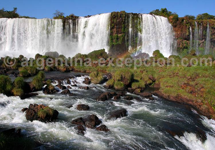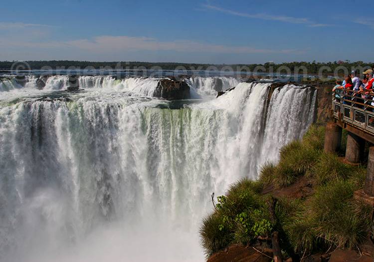 DESCRIPTIF : 80% des chutes se trouvent sur le territoire argentin, si bien que la vue du côté brésilien offre une toute autre perspective. Le parcours commence par le sentier las Cataratas (1,2 km – quelques escaliers) qui emmène jusqu’au point de vue principal, la Garganta del Diablo est accessible par une passerelle de 500 m de long.